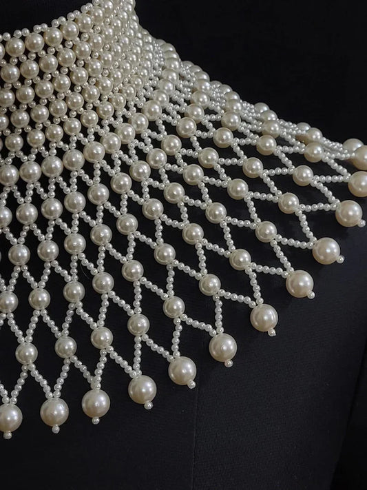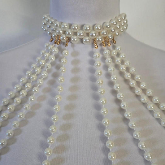 Luxury Pearl Body Chain Harness – Statement Choker Necklace with Multi-Layer Beads